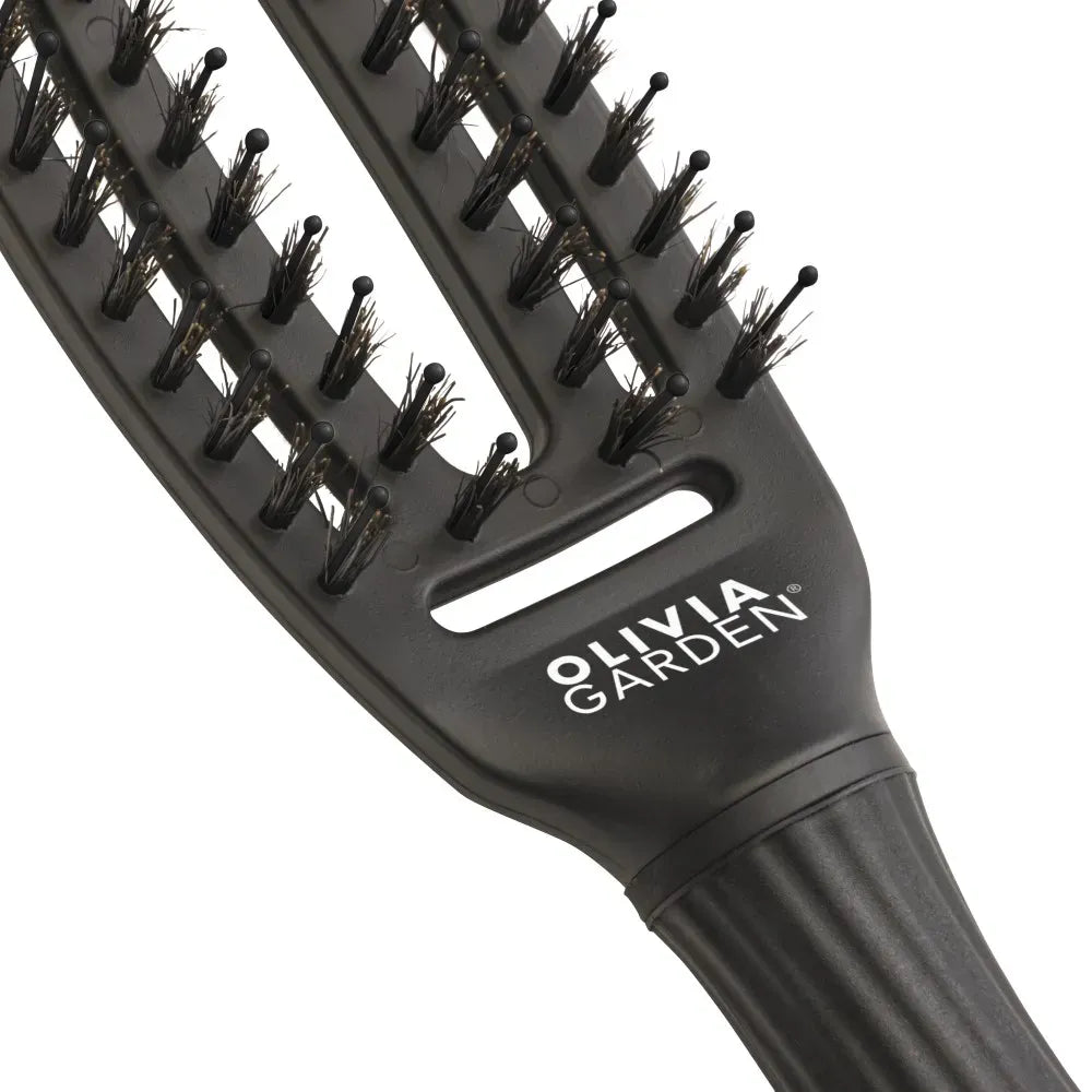 Olivia Garden Fingerbrush Combo detangling daily hairbrush that provides beautiful and natural hair styling results. Unique vented design for super-fast hair drying. The curved shape perfectly fits to the scalp, providing a light massage and superior combing. The brush has a retractable sectioning pick and ball-point tips that are gentle on the scalp.